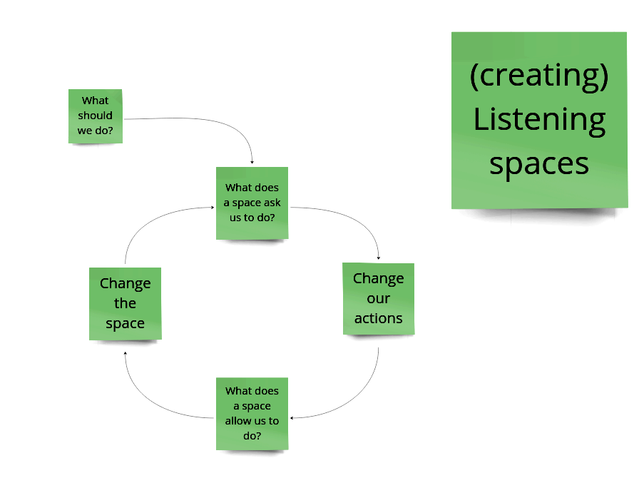 On the first day, we were faced with some fundamental questions: 1) How should we work? 2) What environment should we work in? 3) and how should we structure the sharing and collaboration with visitors?