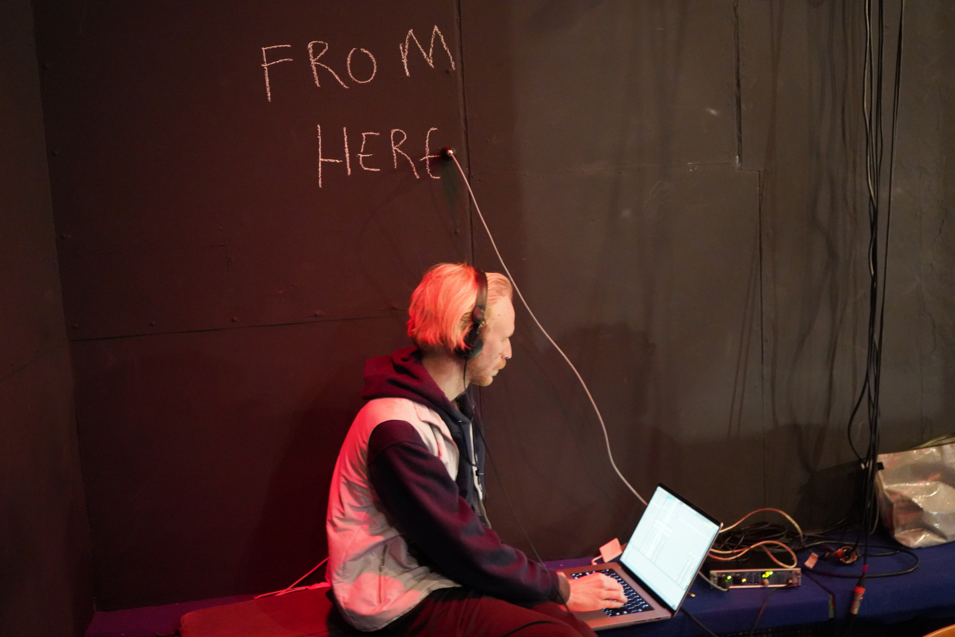These sharing sessions took place on 14th, 15th, and 16th March. Each one was different from the last and encorporated learning from the previous days. There was a dynamic program which often materialized minutes before we went on air. It consisted of FLUCC-based sound projects, as well as voice calls from Robbi Meertens and Liza Kuzyakova, who were working in parallel from the Netherlands. It became clear that doing presentations was quite easy, but facilitating discussions was harder. There was an asymmetry between the participating artists, who knew each other's practices very well, and visitors, who did not arrive with any context or background knowledge. In response to this, we started opening the sessions by asking "Describe what you did today". Finding this question felt like something of a breakthrough. It had a clear timeframe, it didn't require too much background knowledge, and it had an strong feeling of urgency to it.