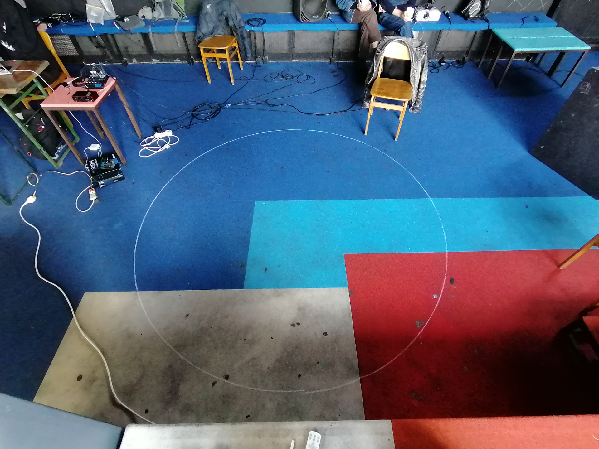 Organizing daily sharing sessions also triggered a daily re-structuring of our working environment. Every day, we moved around tables and benches, tried out new speaker and projection placement, and rediscussed the roles of schedule, presenter, physical audience, radio audience, recordings, etc. A fascinating loop established itself whereby the working/presenting environment shaped what was worked on/presented, which in turn re-shaped the environment.